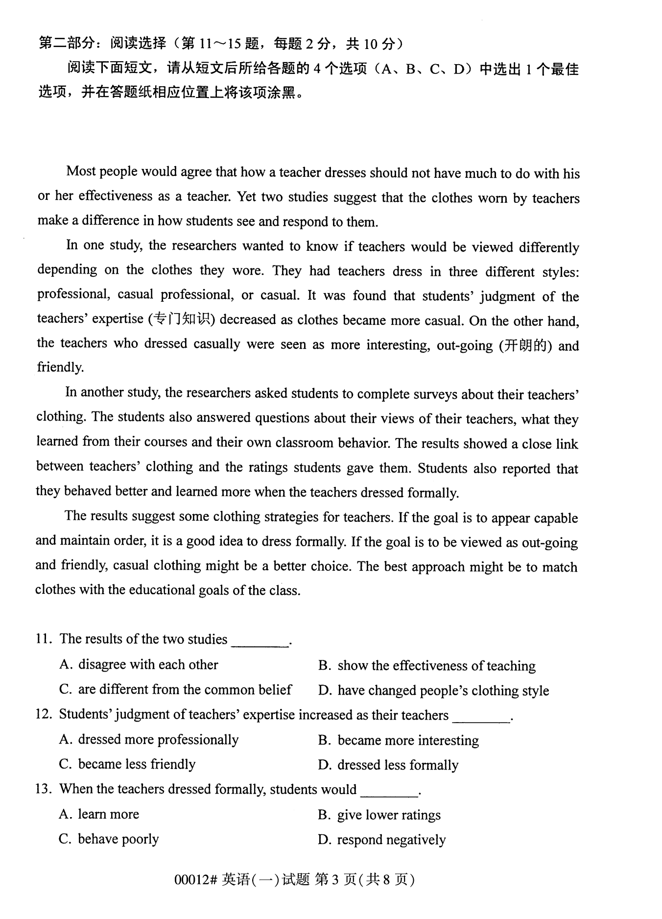 【结尾】以上是2022年10月辽宁自考00012英语(一)真题试卷的简要介绍,如想查看更多内容记得查看:辽宁自考解答、自考本科、自考专业、自考复习备考等相关资讯。
