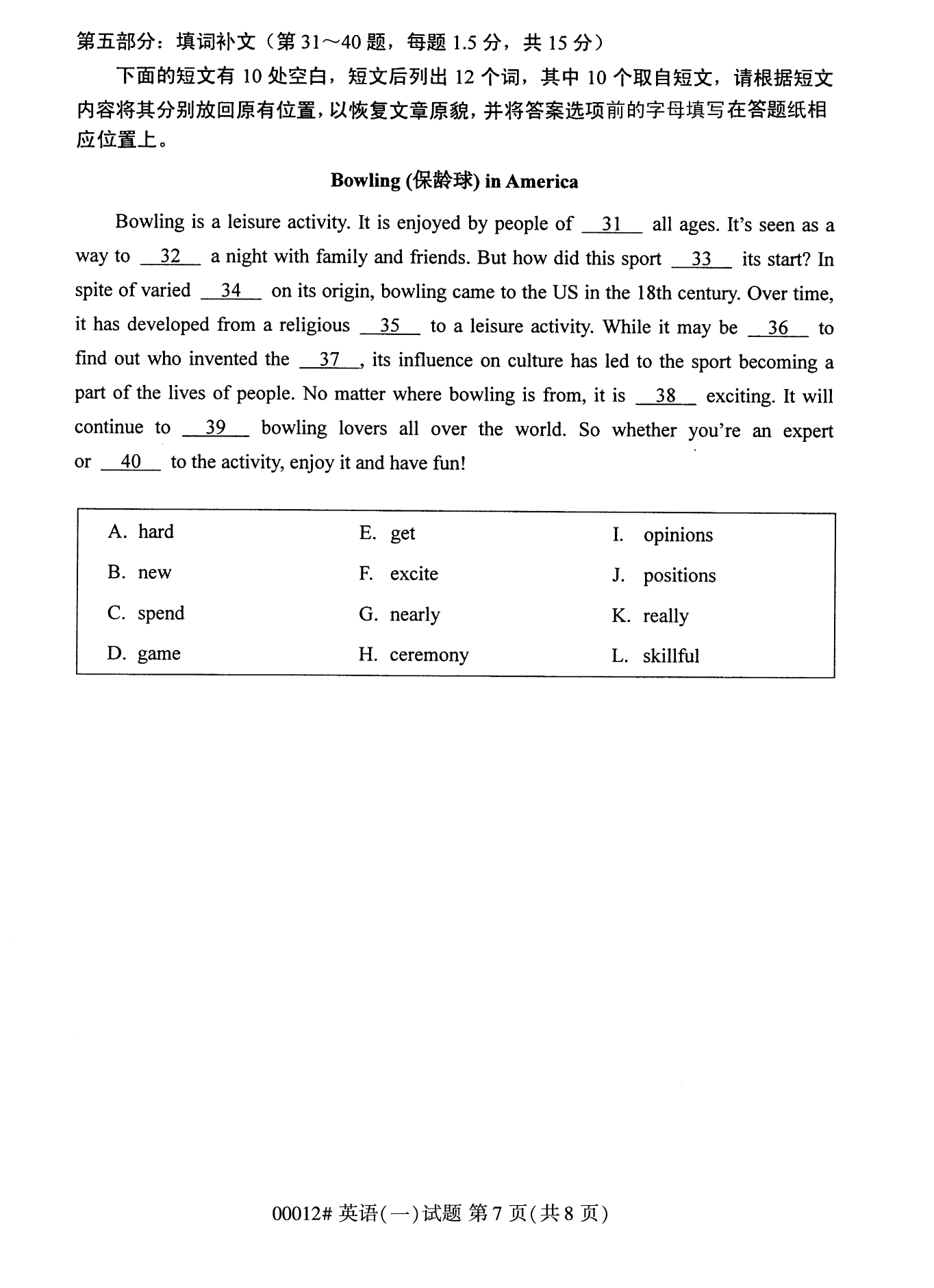 【导读】以下是辽宁自考网为您带来的2022年10月辽宁自考00012英语(一)真题试卷。