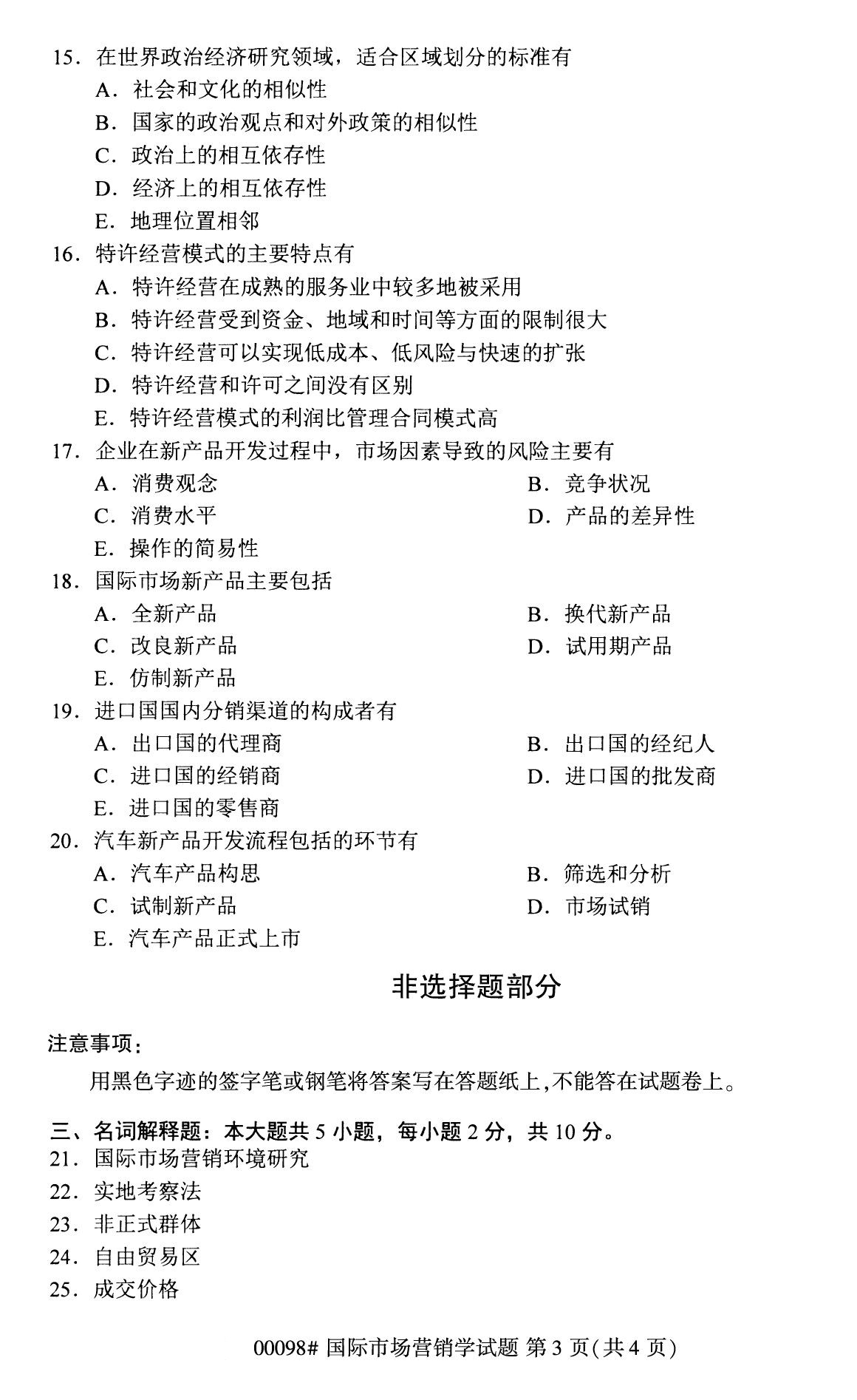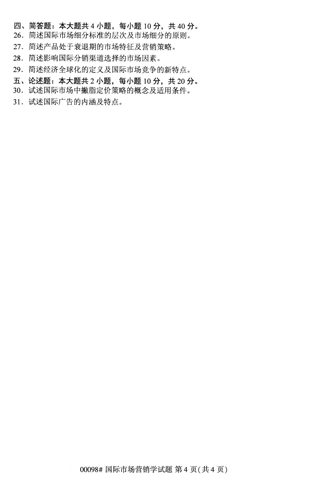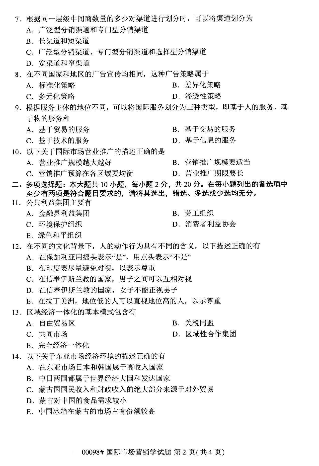 2022年10月辽宁自考00098国际市场营销学真题试卷