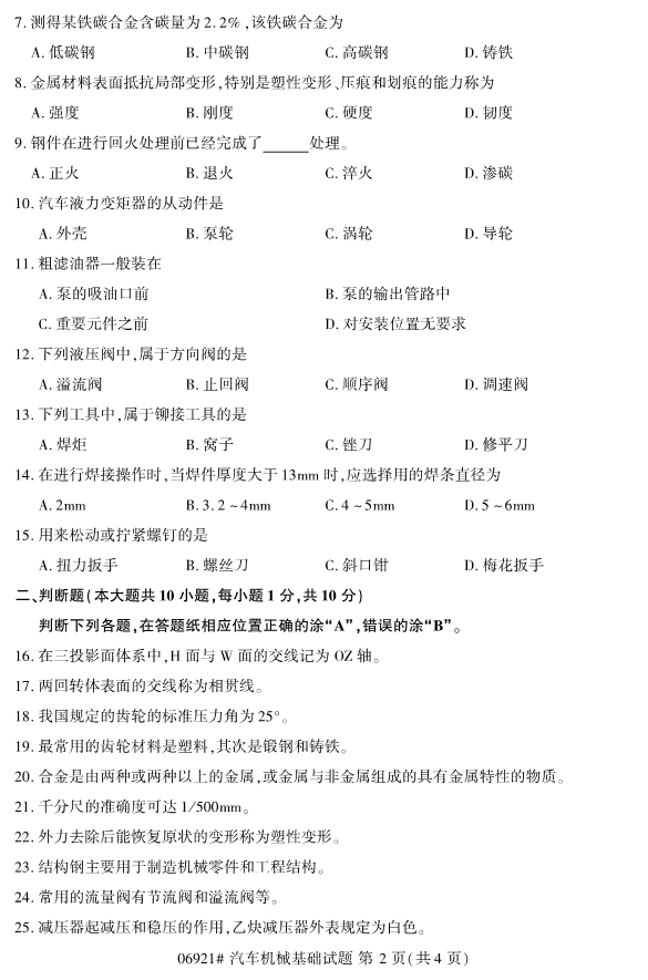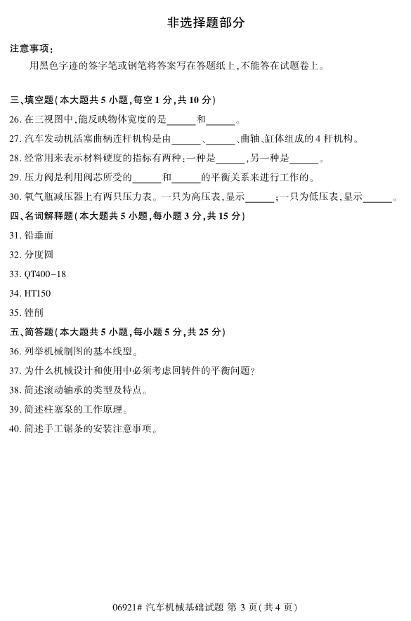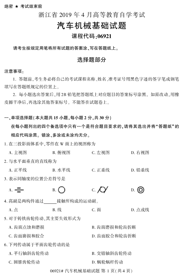 • 所在位置:辽宁自学考试网 > 自考试卷 > 2019年4月全国自考汽车机械基础真题