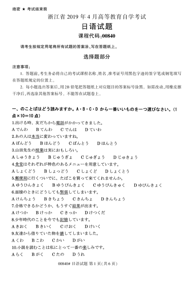 • 所在位置:辽宁自学考试网 > 自考试卷 > 2019年4月全国自考日语真题