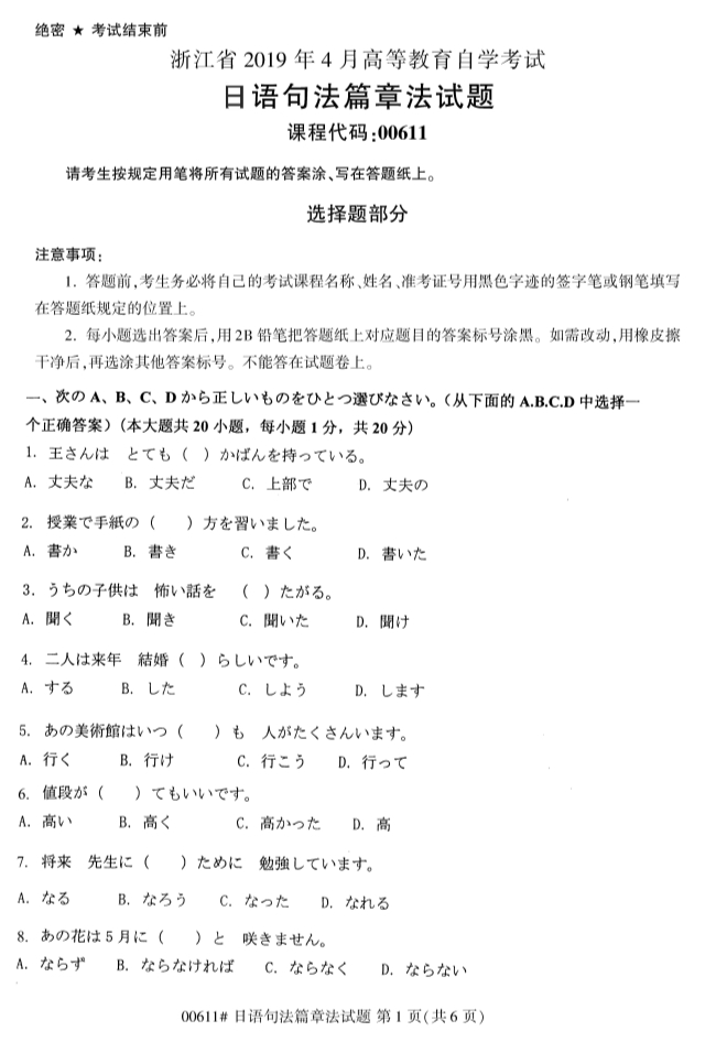 • 所在位置:辽宁自学考试网 > 自考试卷 > 2019年4月全国自考日语句法篇章法真题