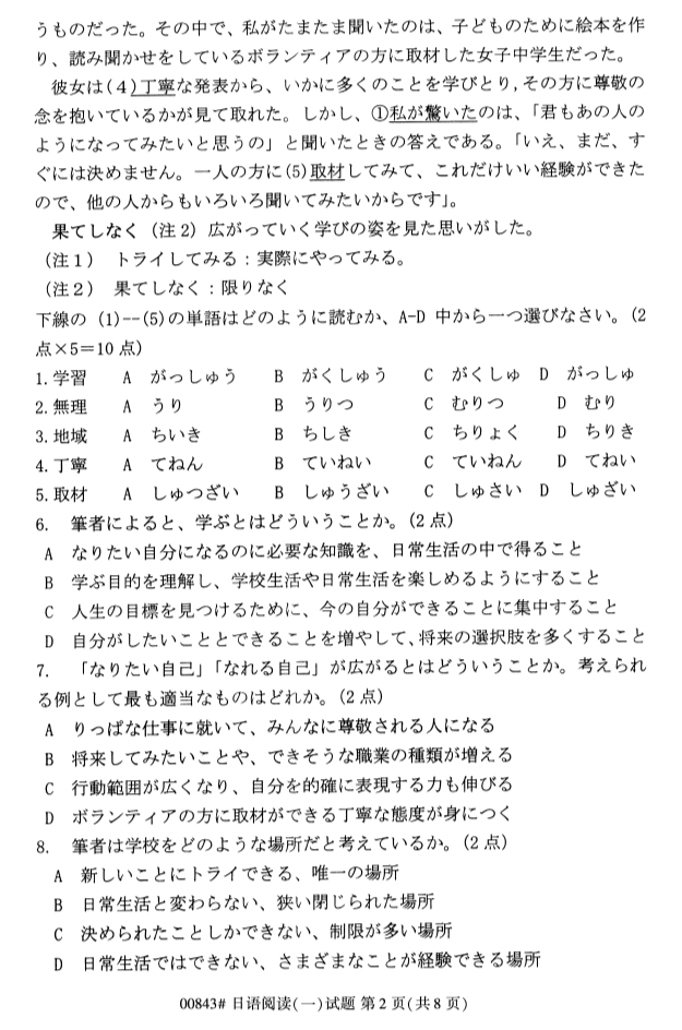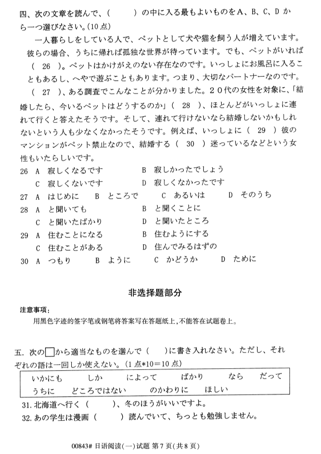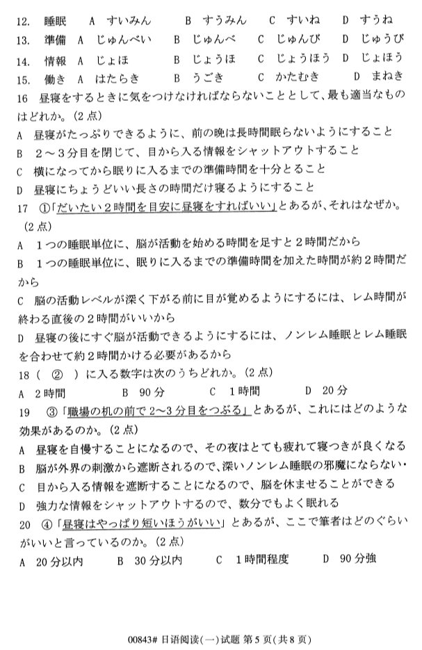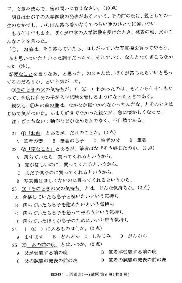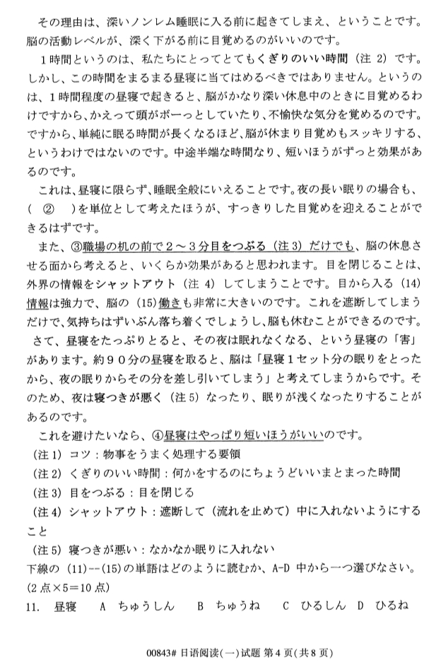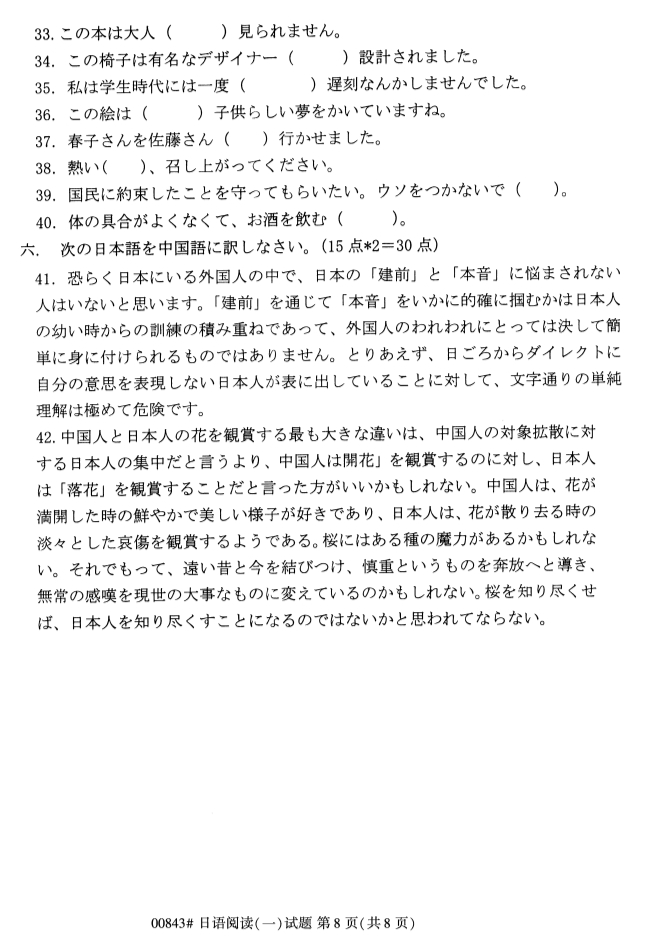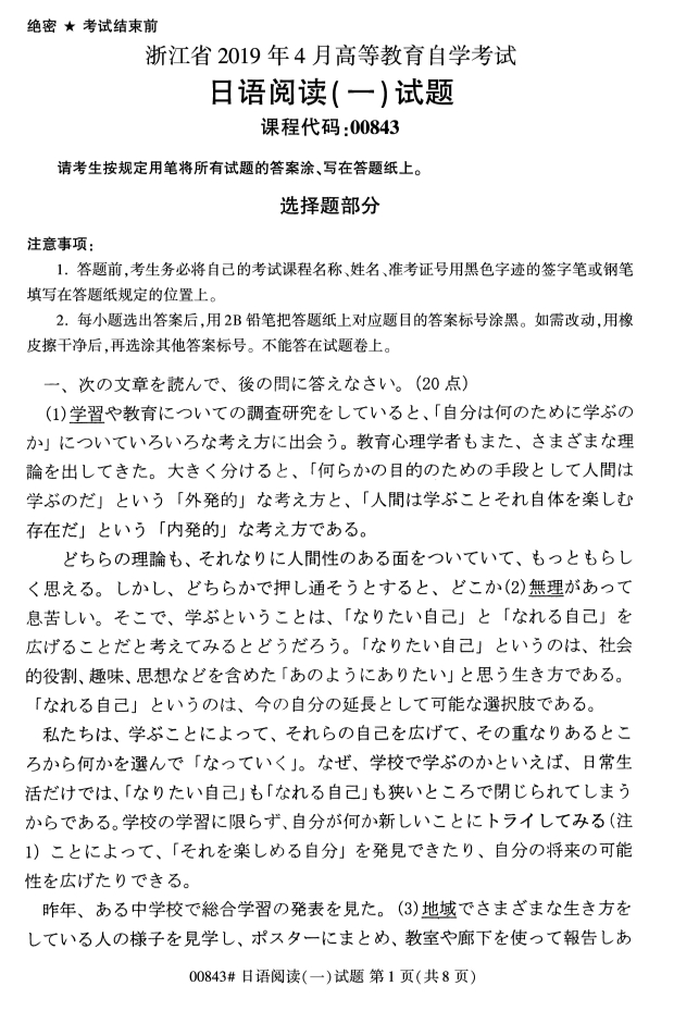 • 所在位置:辽宁自学考试网 > 自考试卷 > 2019年4月全国自考日语阅读(一)真题