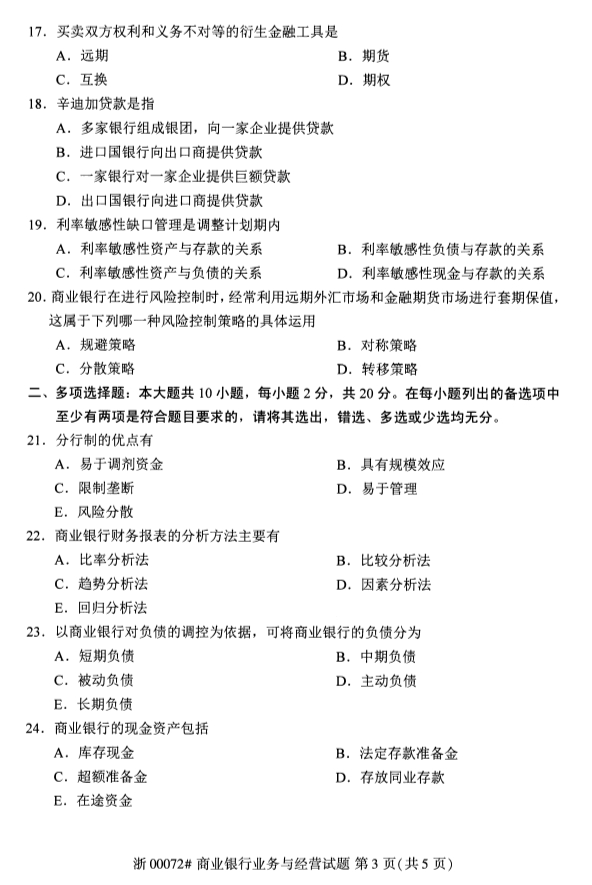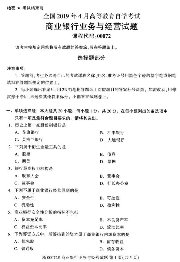 • 所在位置:辽宁自学考试网 > 自考试卷 > 2019年4月全国自考商业银行业务与经营真题