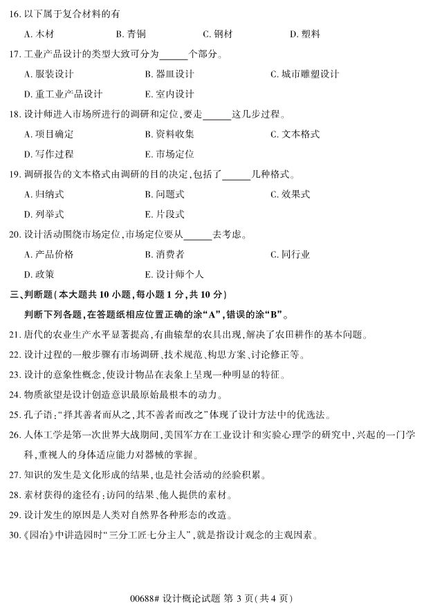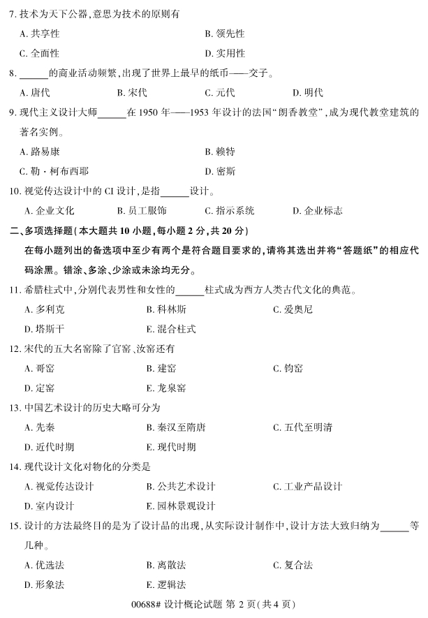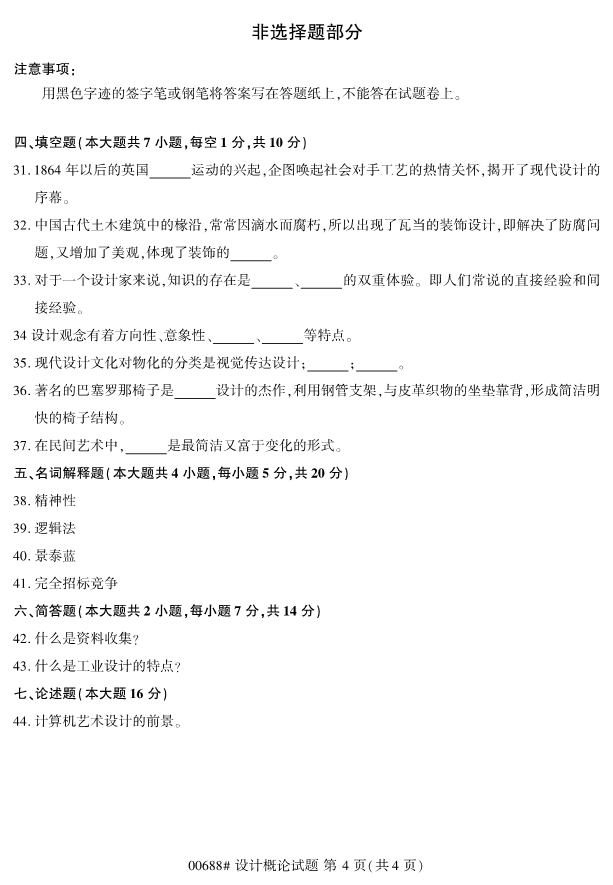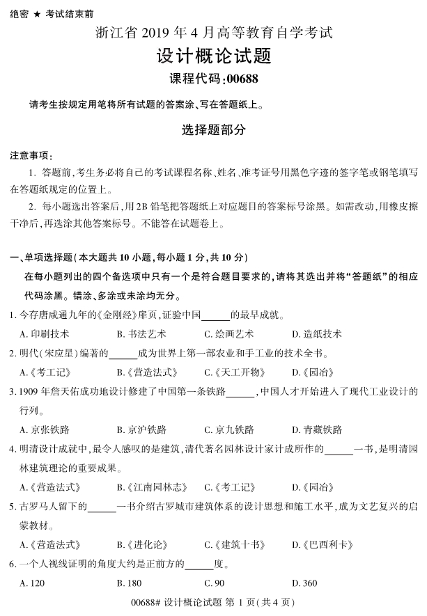 • 所在位置:辽宁自学考试网 > 自考试卷 > 2019年4月全国自考设计概论真题