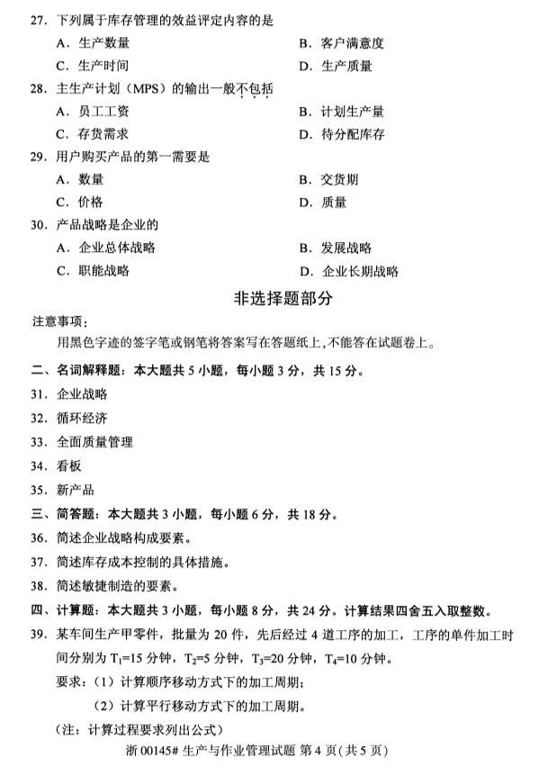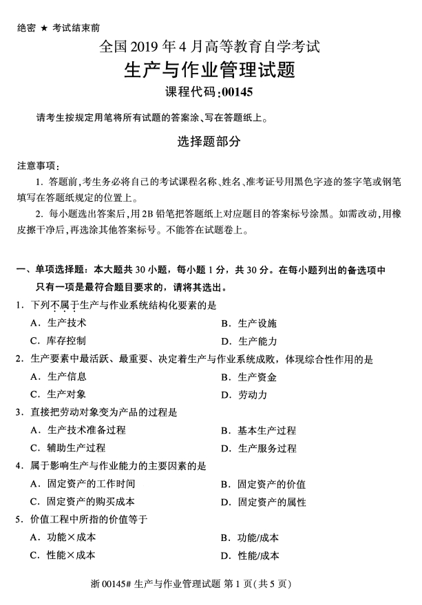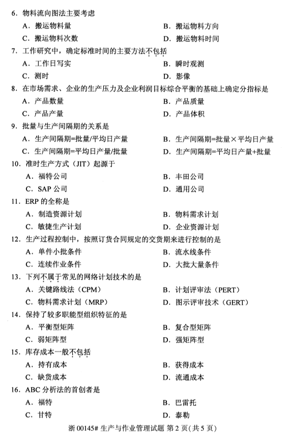 • 所在位置:辽宁自学考试网 > 自考试卷 > 2019年4月全国自考生产与作业管理真题