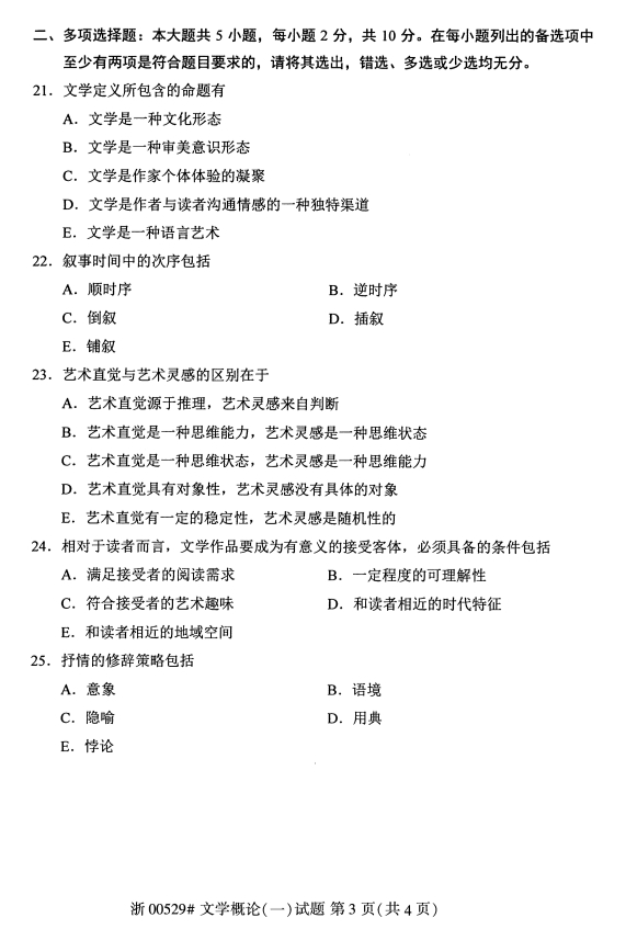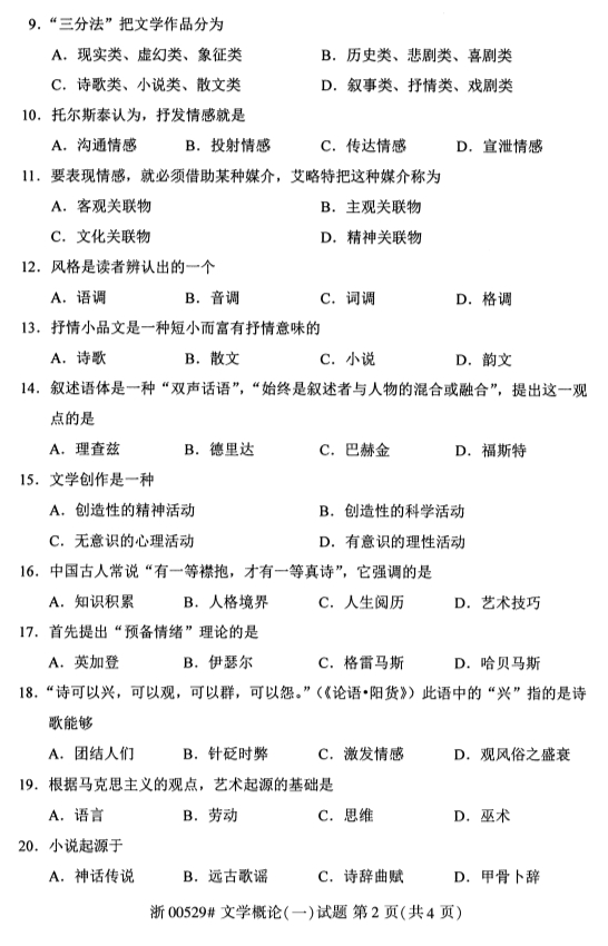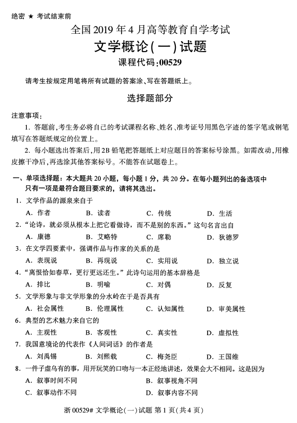 • 所在位置:辽宁自学考试网 > 自考试卷 > 2019年4月全国自考文学概论(一)真题