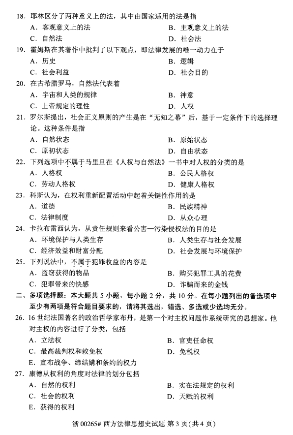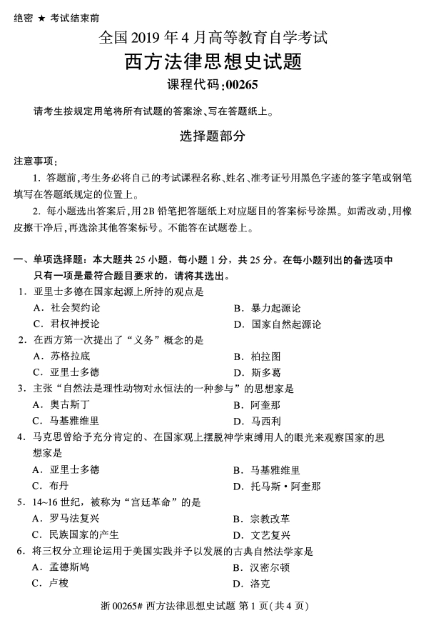 • 所在位置:辽宁自学考试网 > 自考试卷 > 2019年4月全国自考西方法律思想史真题