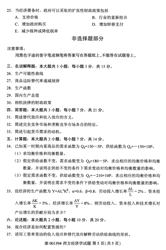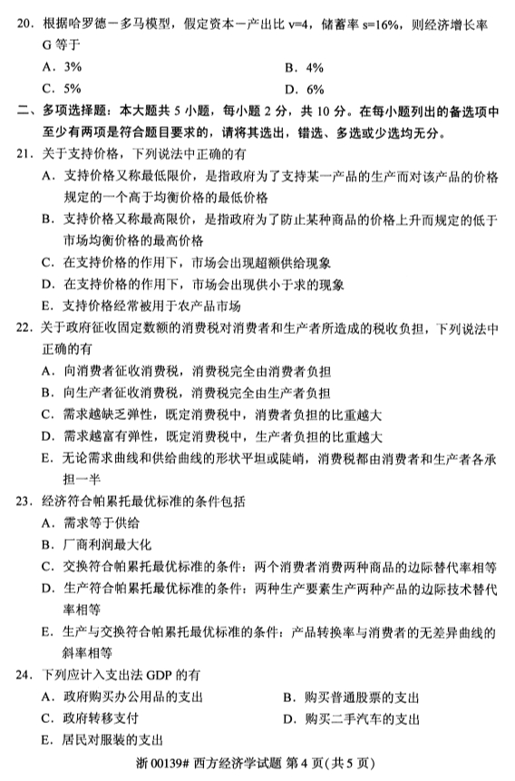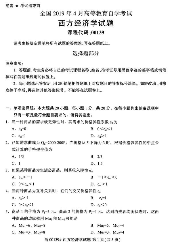 • 所在位置:辽宁自学考试网 > 自考试卷 > 2019年4月全国自考西方经济学真题