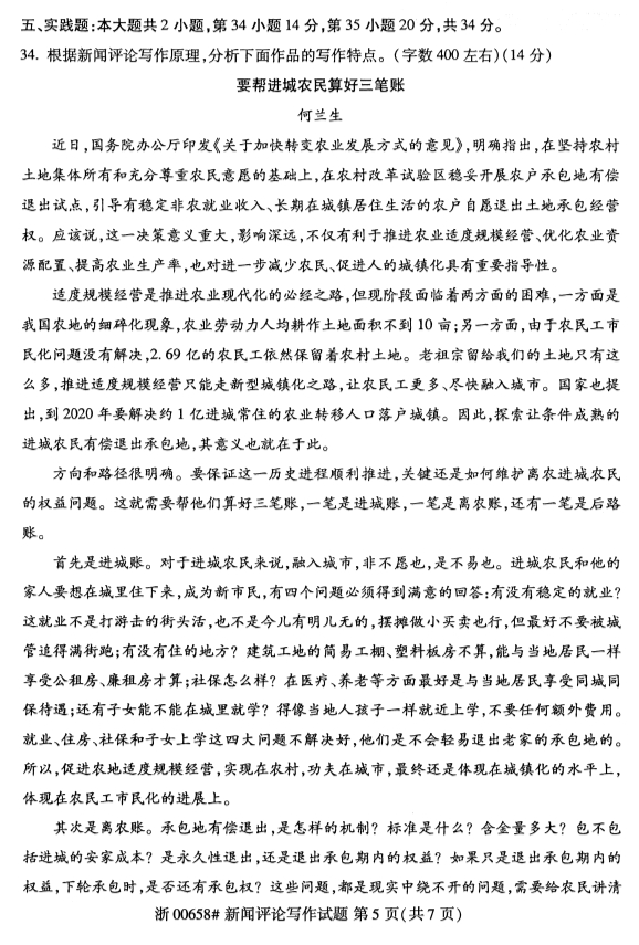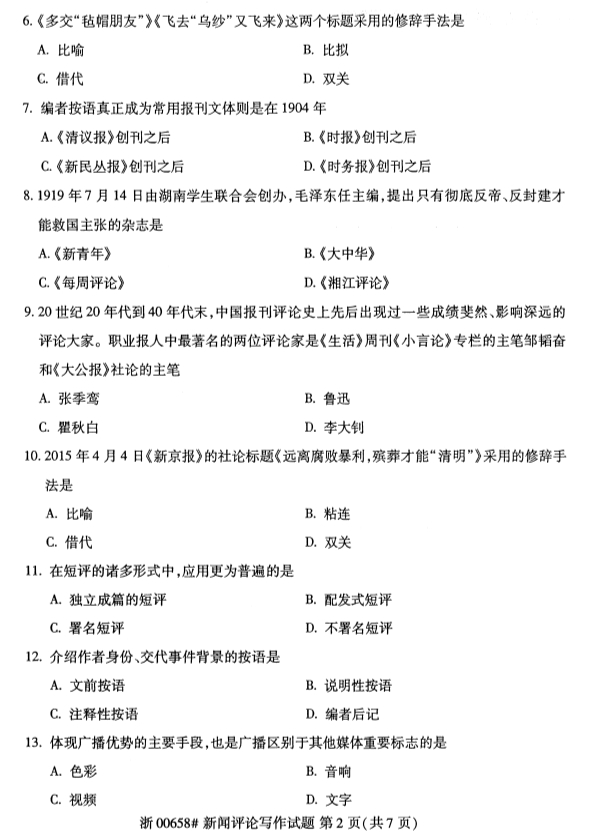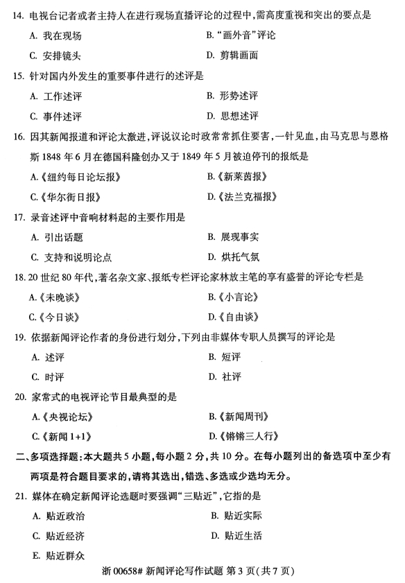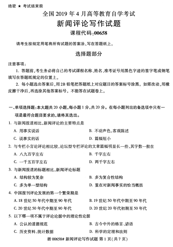 • 所在位置:辽宁自学考试网 > 自考试卷 > 2019年4月全国自考新闻评论写作真题