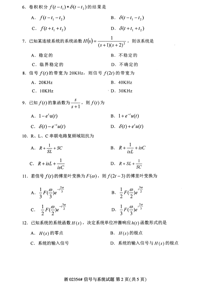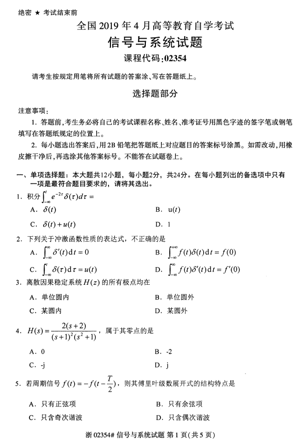 • 所在位置:辽宁自学考试网 > 自考试卷 > 2019年4月全国自考信号与系统真题