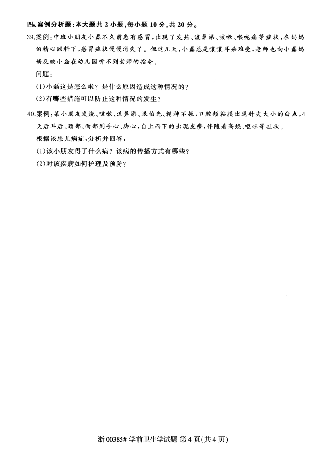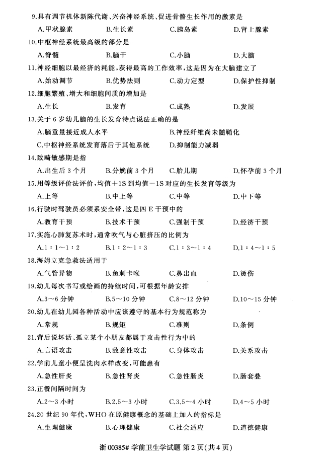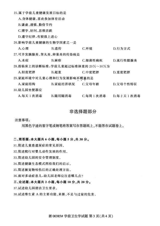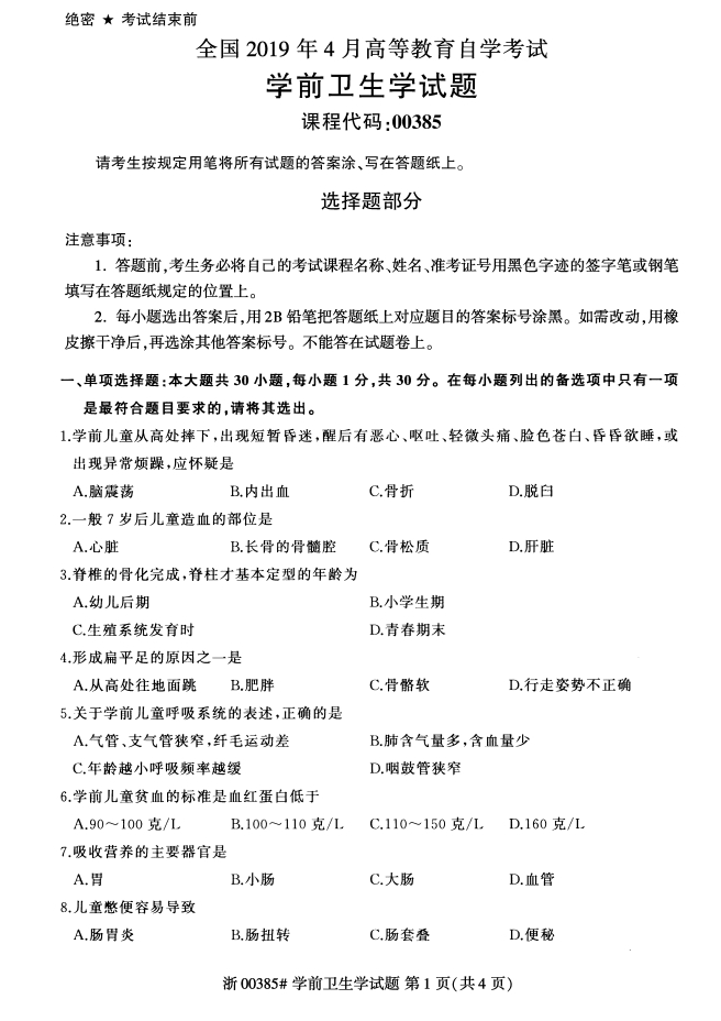 • 所在位置:辽宁自学考试网 > 自考试卷 > 2019年4月全国自考学前卫生学真题