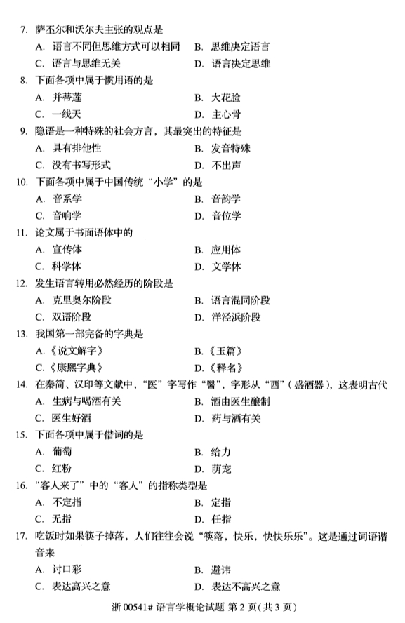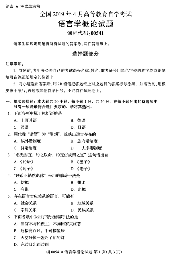 • 所在位置:辽宁自学考试网 > 自考试卷 > 2019年4月全国自考语言学概论真题