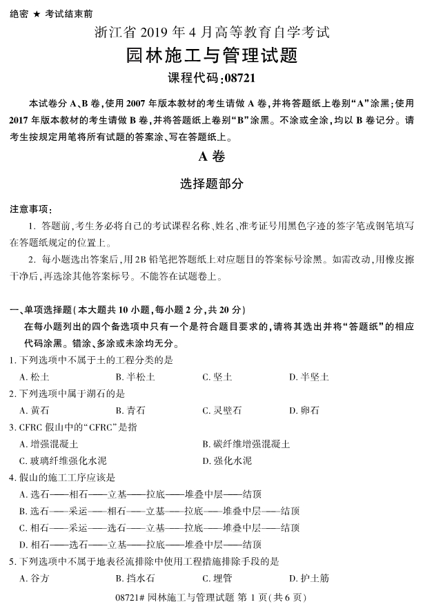 • 所在位置:辽宁自学考试网 > 自考试卷 > 2019年4月全国自考园林施工与管理真题
