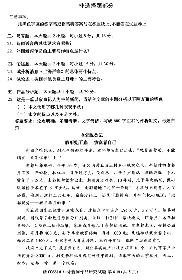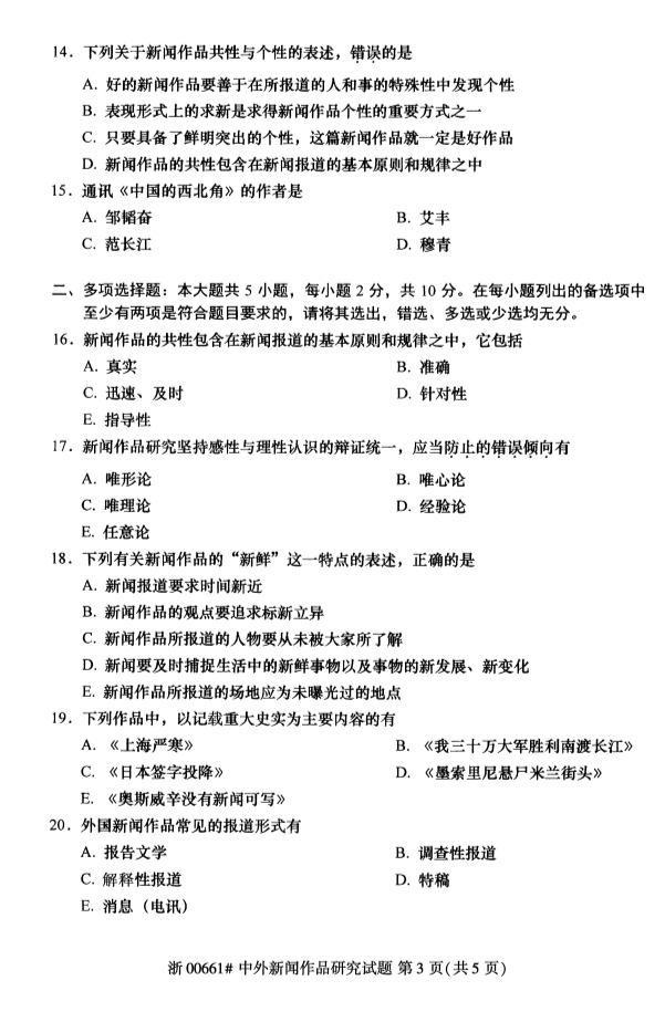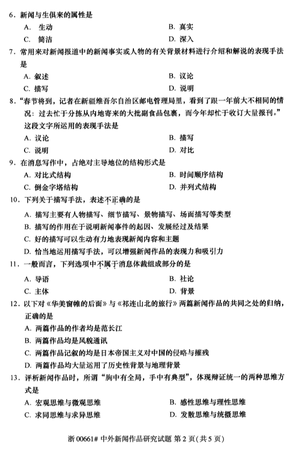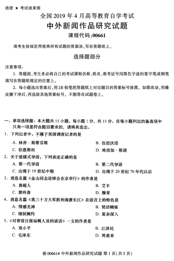 • 所在位置:辽宁自学考试网 > 自考试卷 > 2019年4月全国自考中外新闻作品研究真题