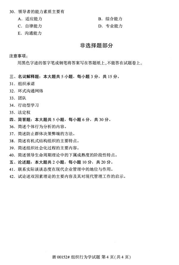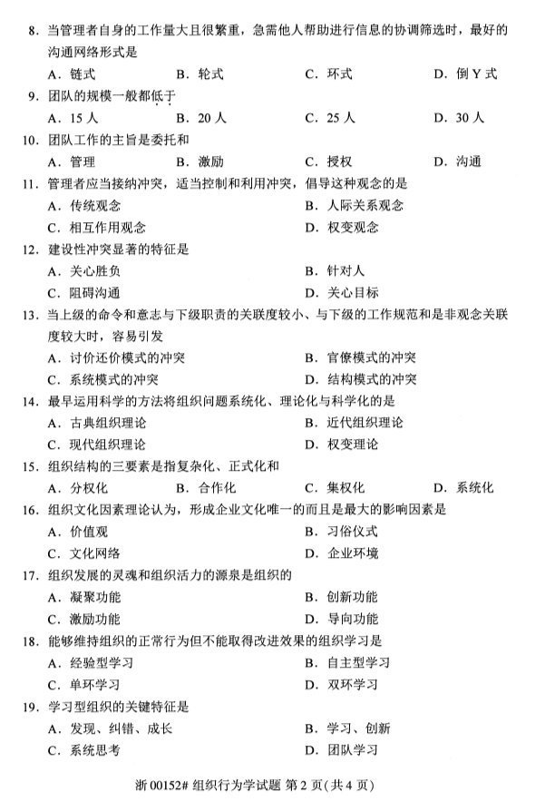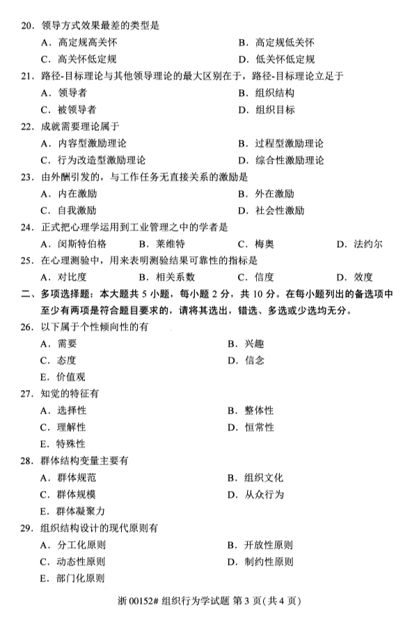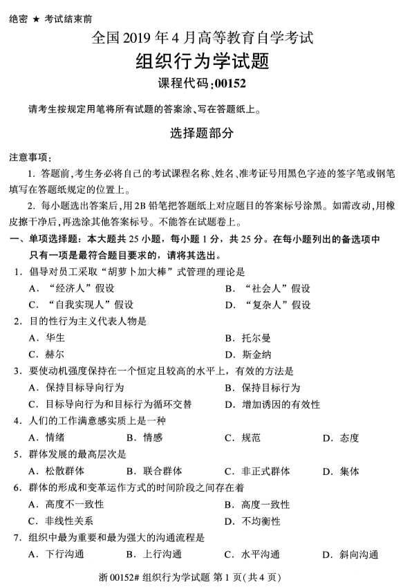 • 所在位置:辽宁自学考试网 > 自考试卷 > 2019年4月全国自考组织行为学真题