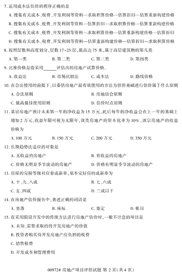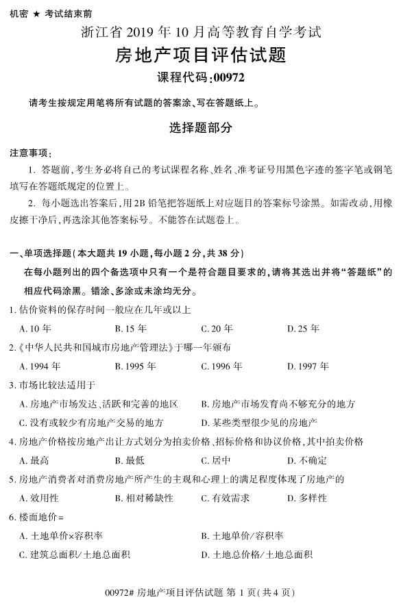 • 所在位置:辽宁自学考试网 > 自考试卷 > 2019年10月全国自考房地产项目评估真题
