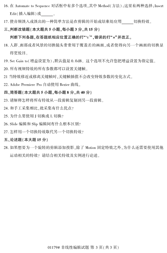 • 所在位置:辽宁自学考试网 > 自考试卷 > 2019年10月全国自考非线性编辑真题
