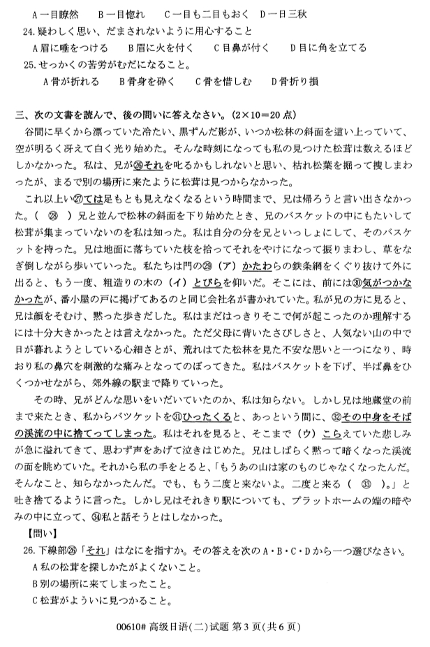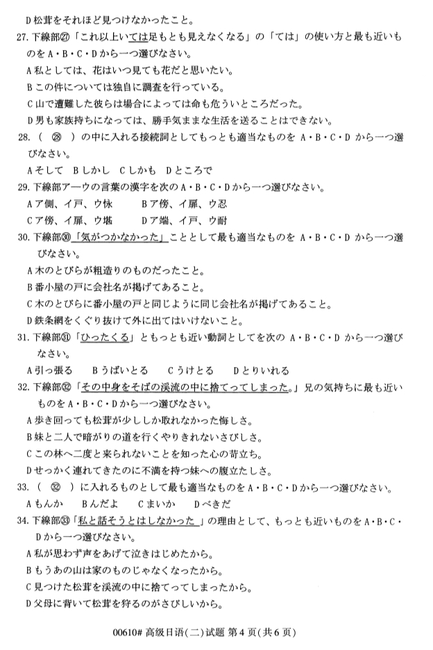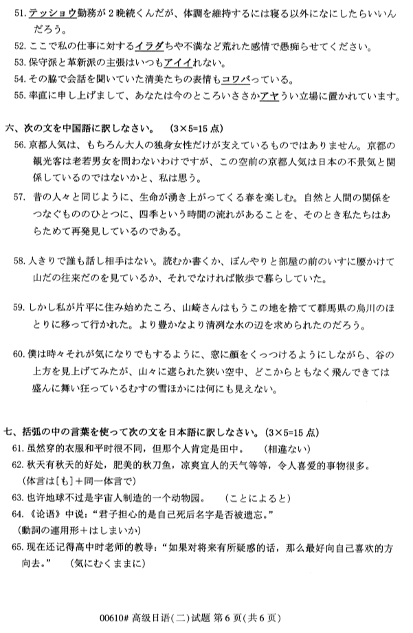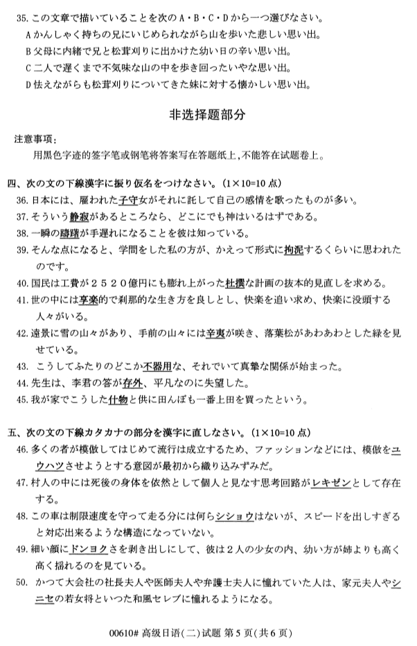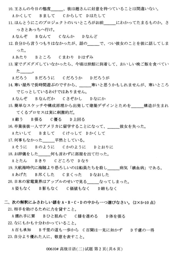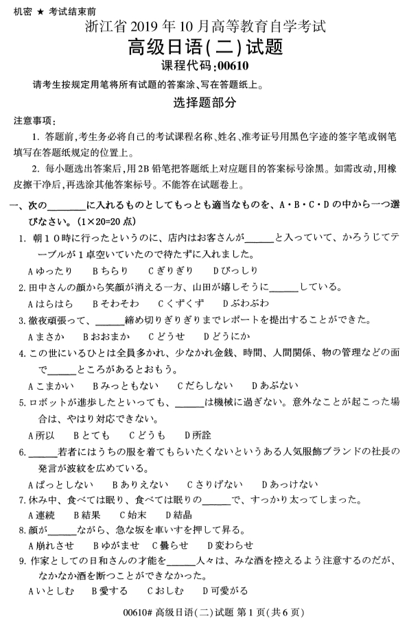 2019年10月全国自考高级日语(二)真题