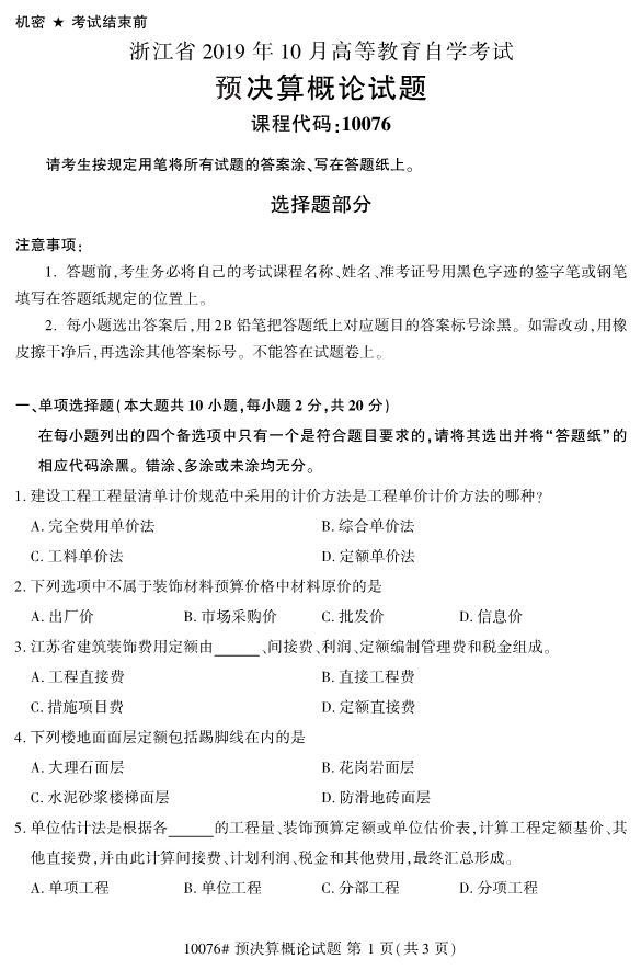 • 所在位置:辽宁自学考试网 > 自考试卷 > 2019年10月全国自考预决算概论真题