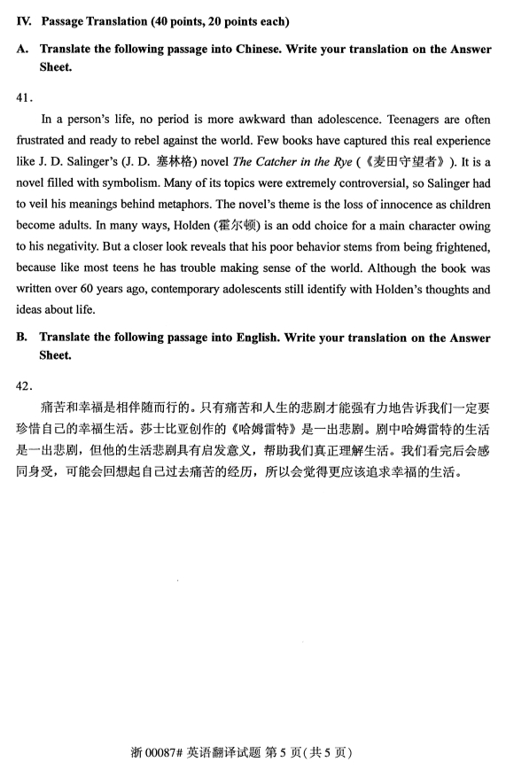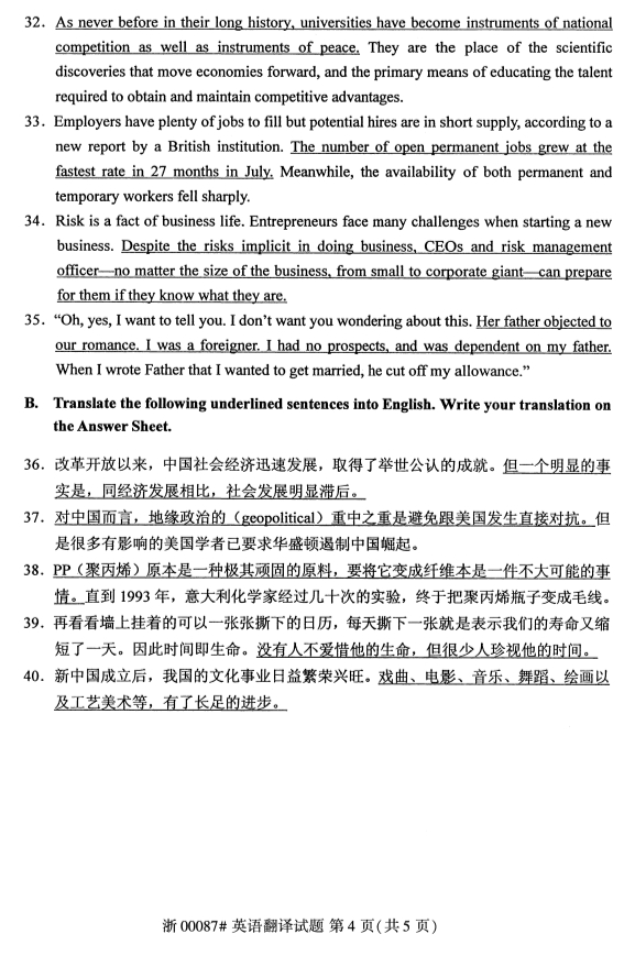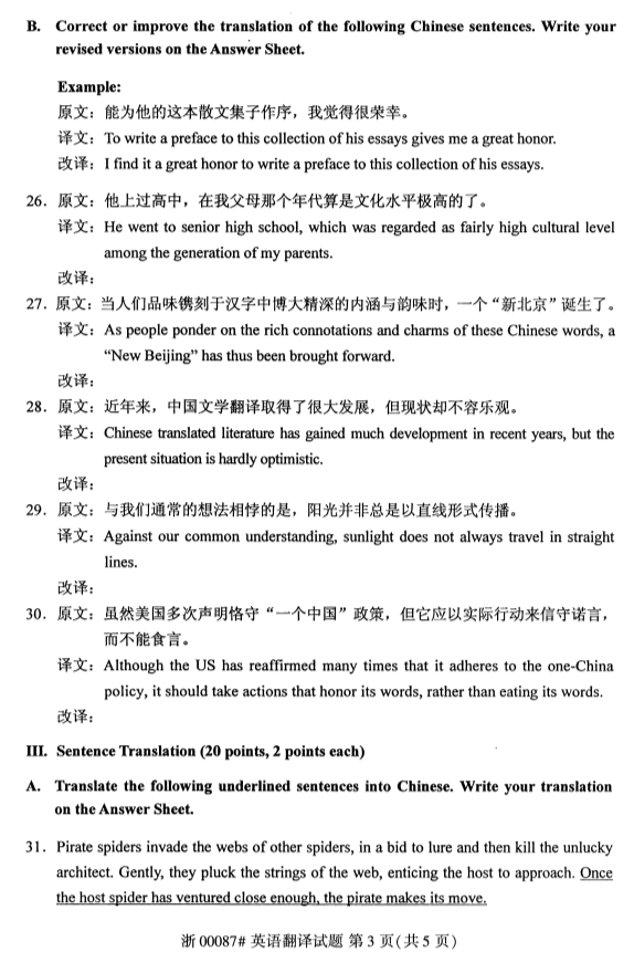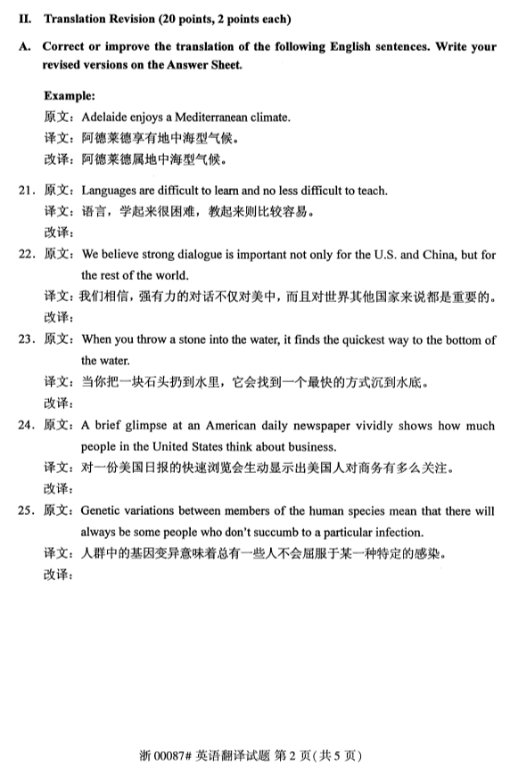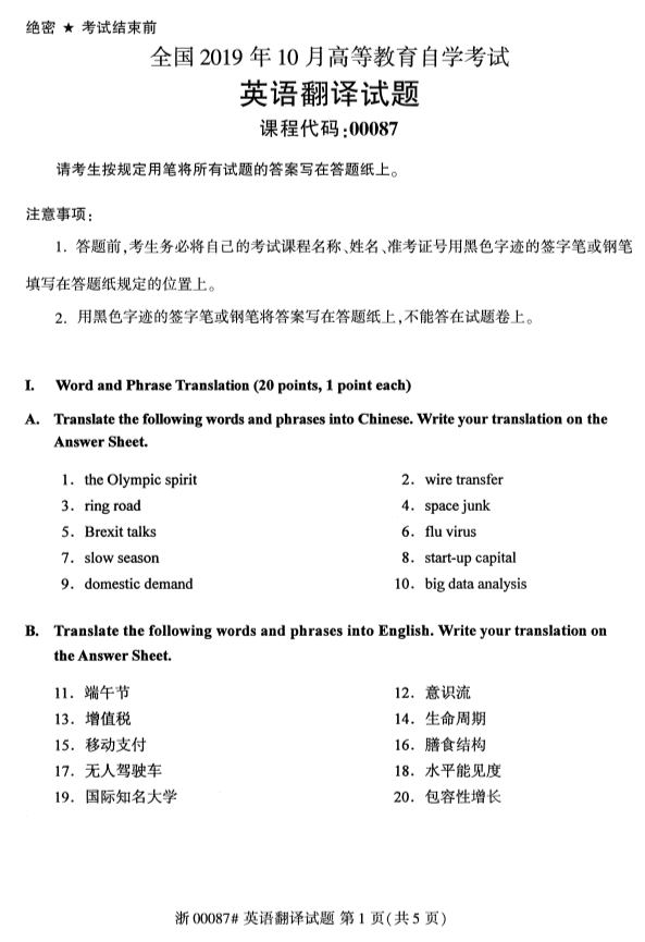• 所在位置:辽宁自学考试网 > 自考试卷 > 2019年10月全国自考英语翻译真题