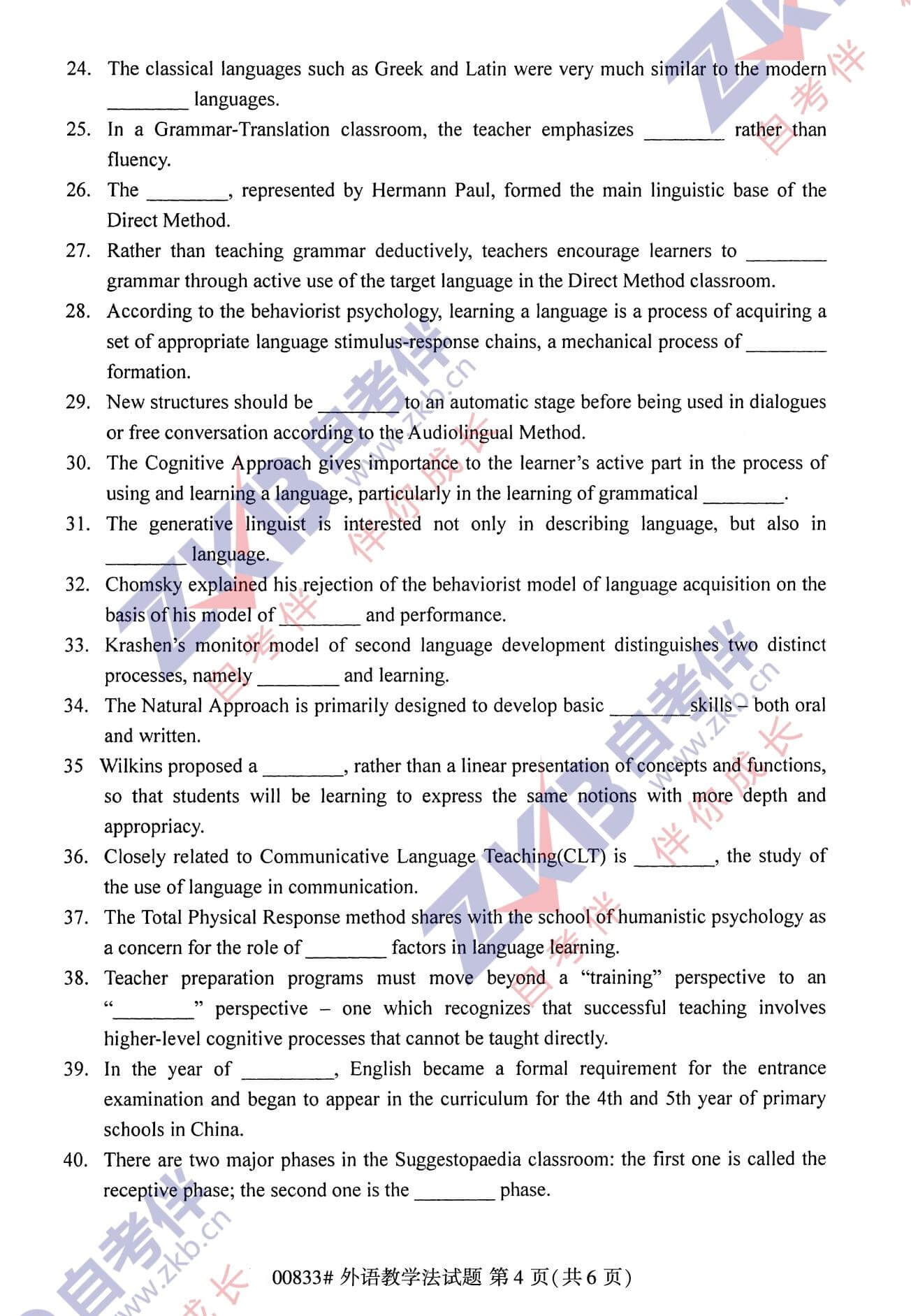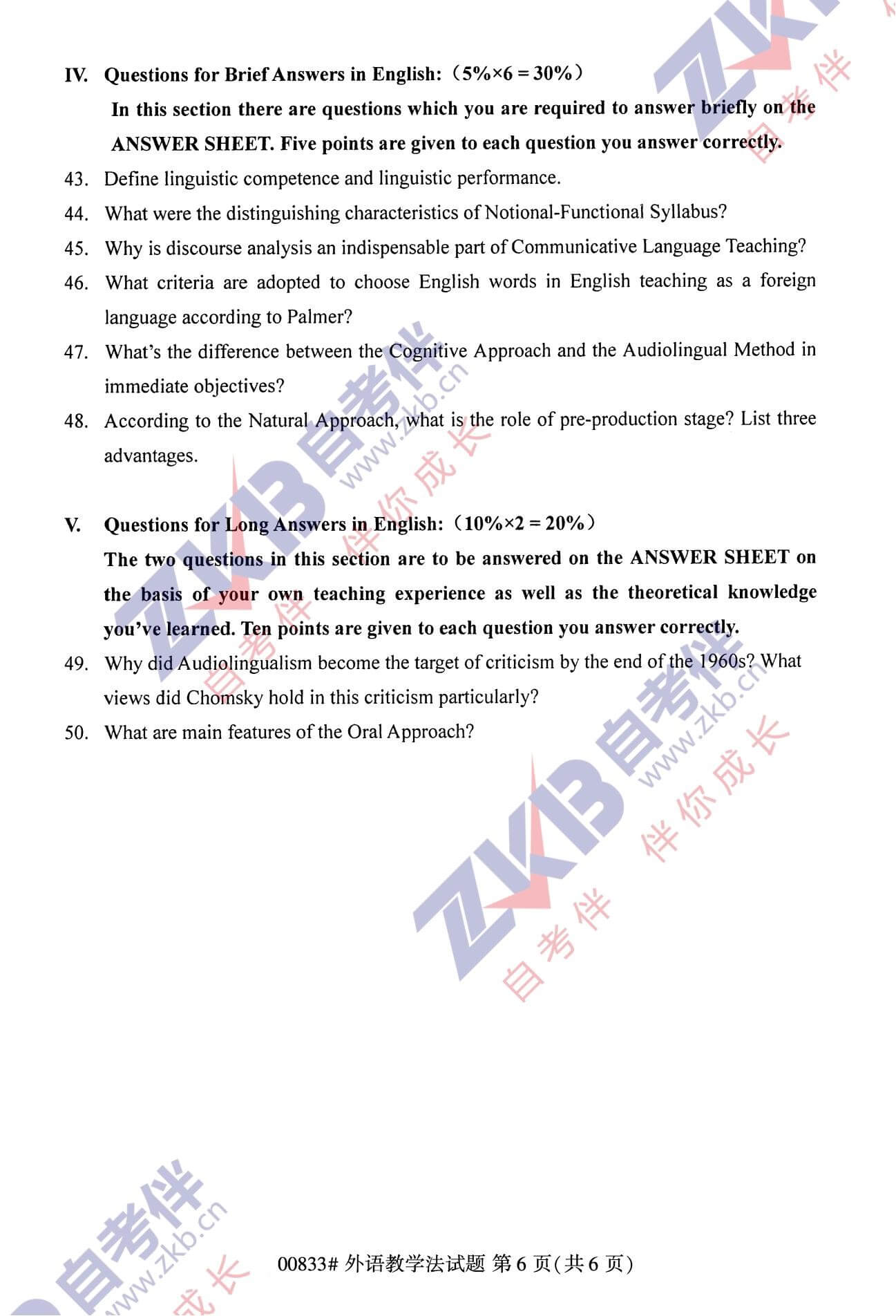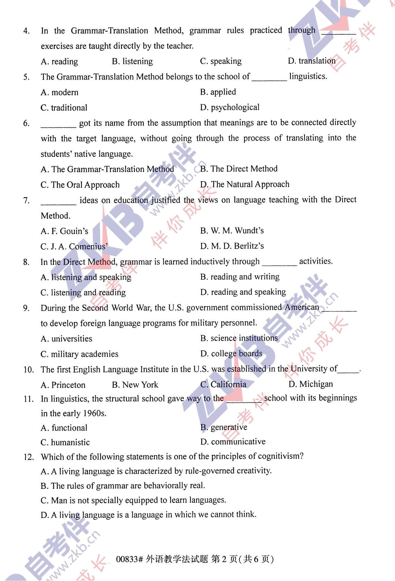 【导读】以下是辽宁自考网为您带来的2021年10月辽宁自考00833外语教学法真题试卷
